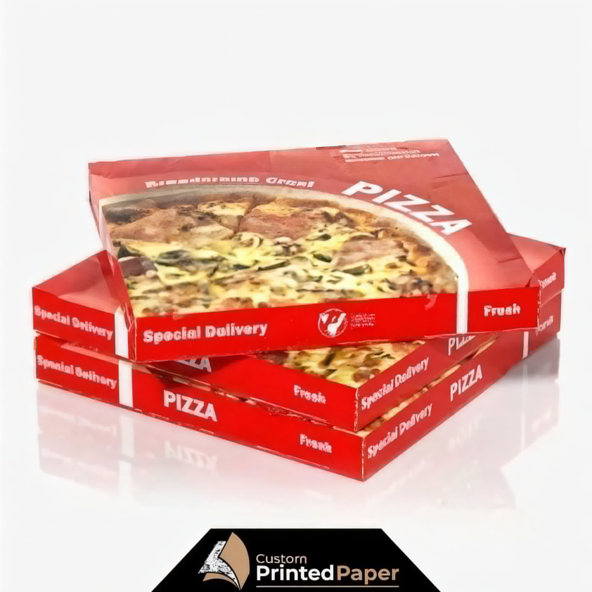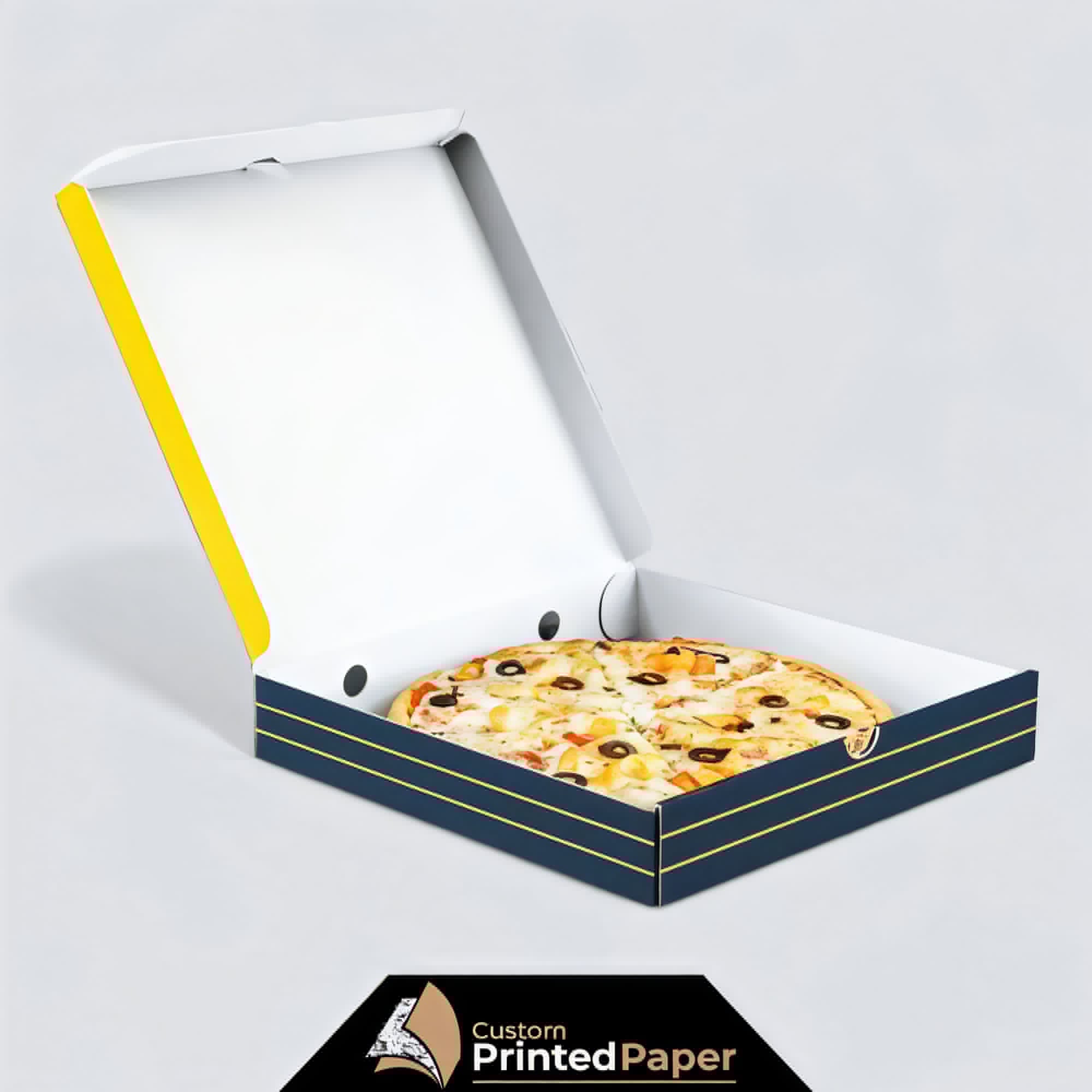 We at Custom Printed Paper are committed to offering a variety of custom pizza boxes that are utilized in the packaging of pizzas in numerous different types, shapes, and sizes. Our pizza boxes are very lightweight which makes their delivery easy and accessible. In addition, we always provide the best and supreme quality packaging material for our custom food boxes.
